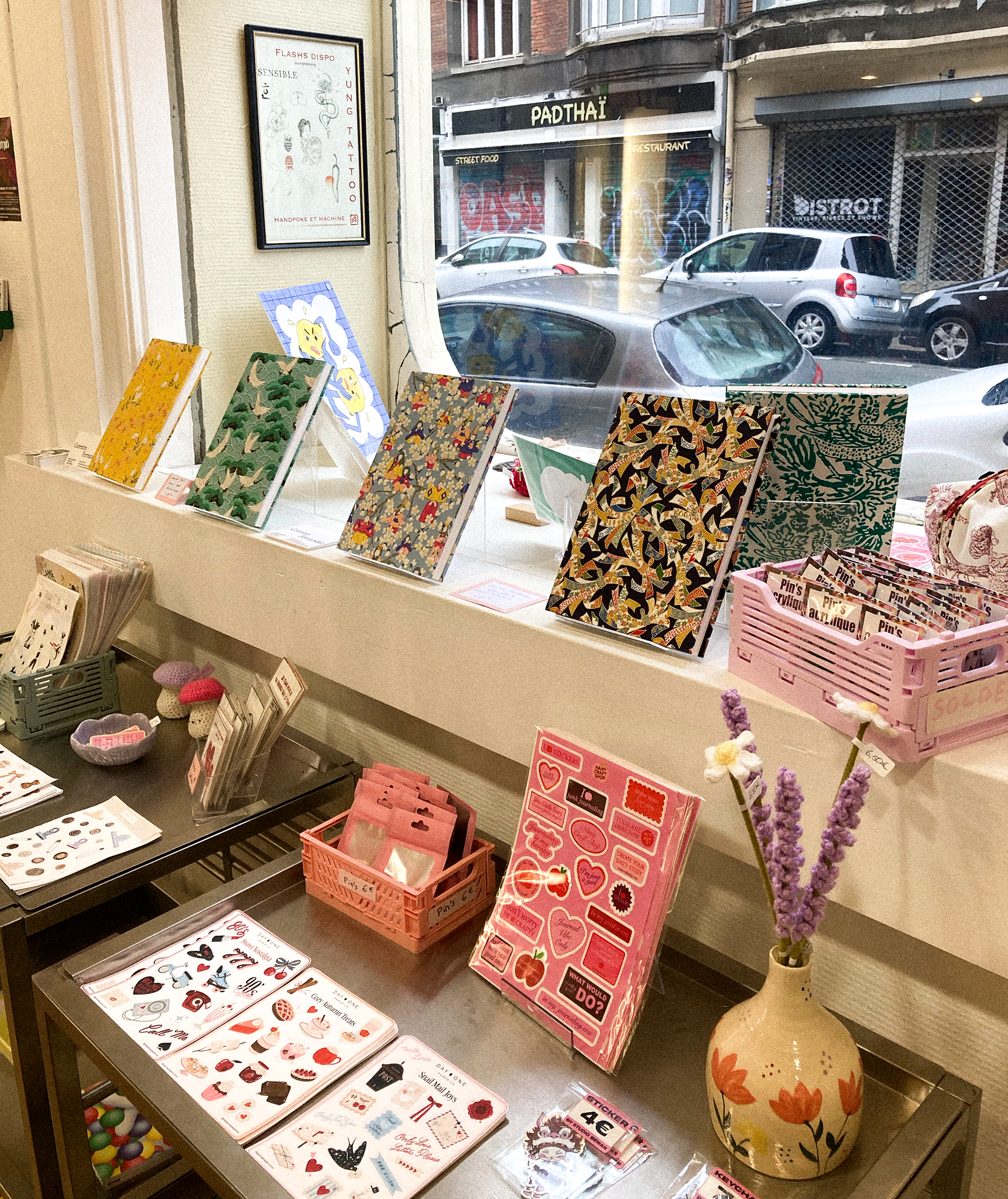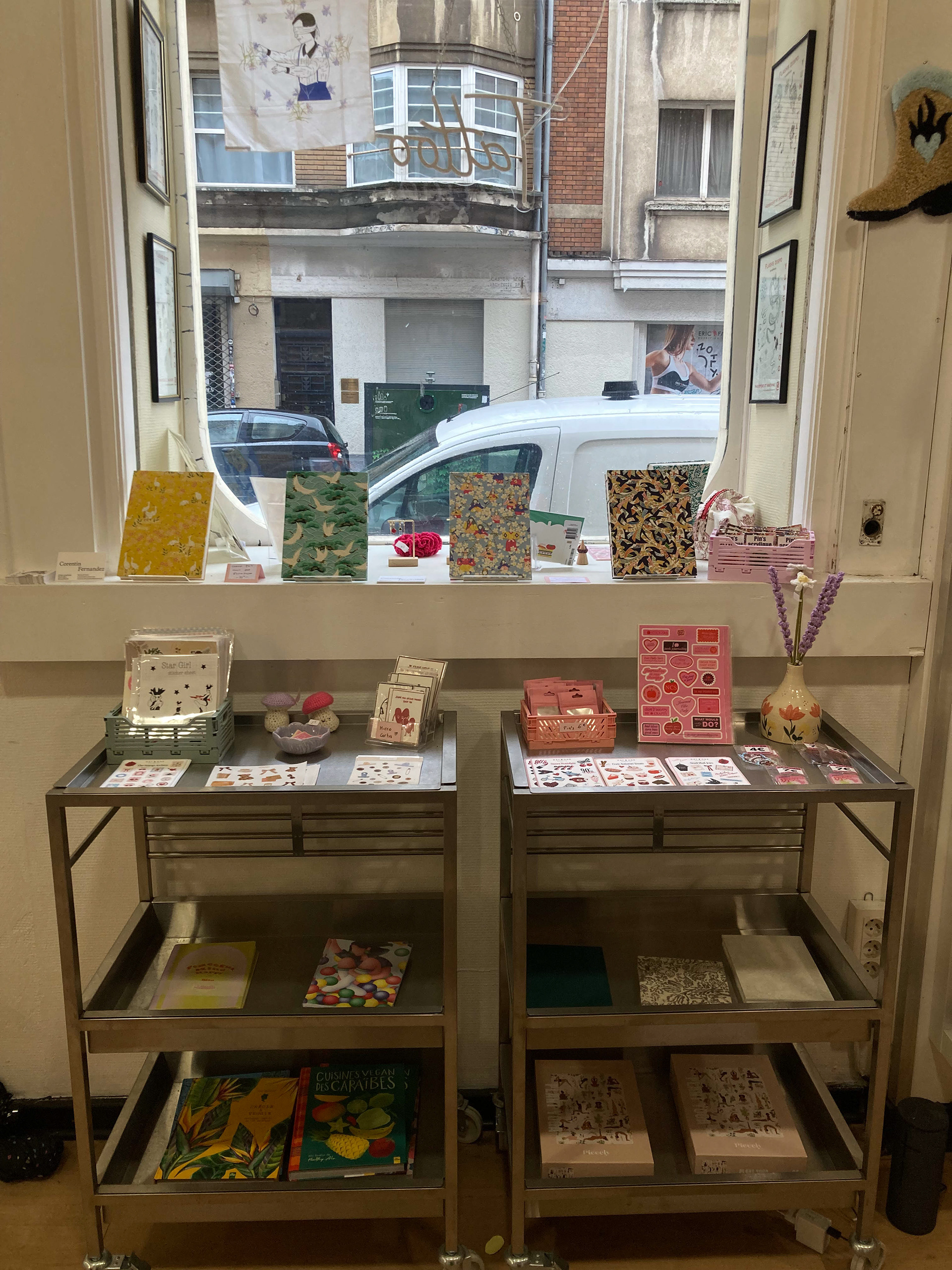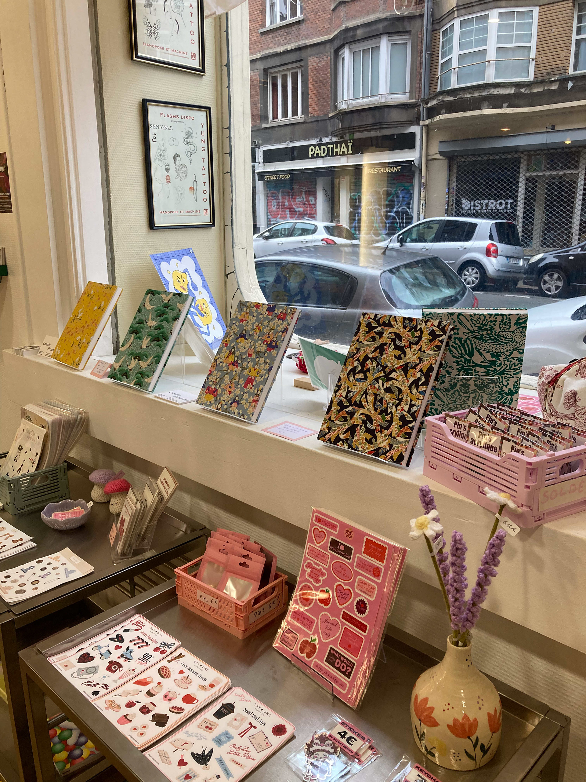 Créations sélectionnées par la boutique pour la vente. Carnets conçus à la main et reliés au fil. Papier japonais et népalais sérigraphié pour la couverture.