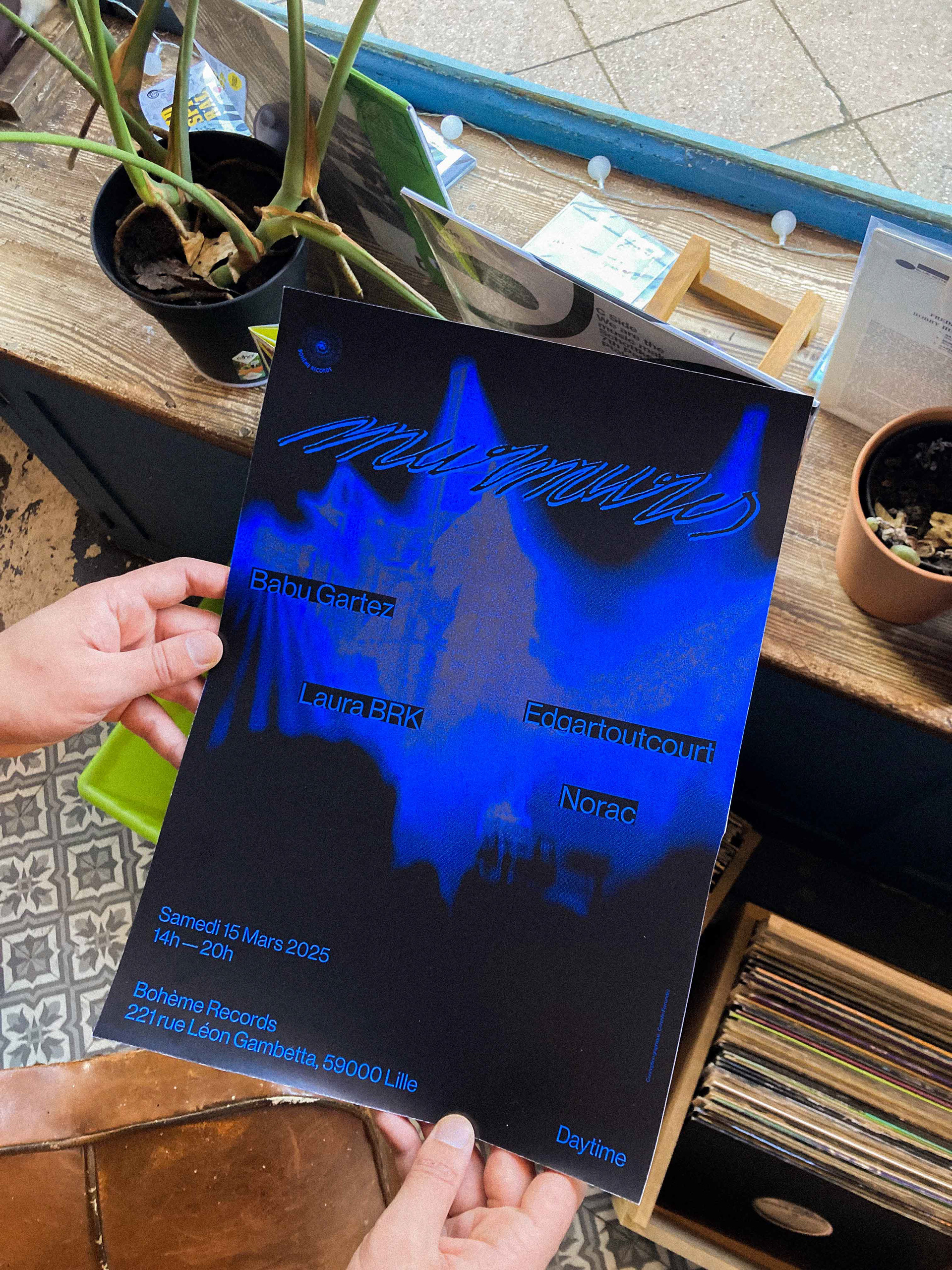 Réalisation de l'affiche et des déclinaisons réseaux de l'évènement Murmures, qui a lieu le samedi 15 mars chez Bohème Records à Lille où 4 DJ’s présenteront leurs interprétations de la Deep House.